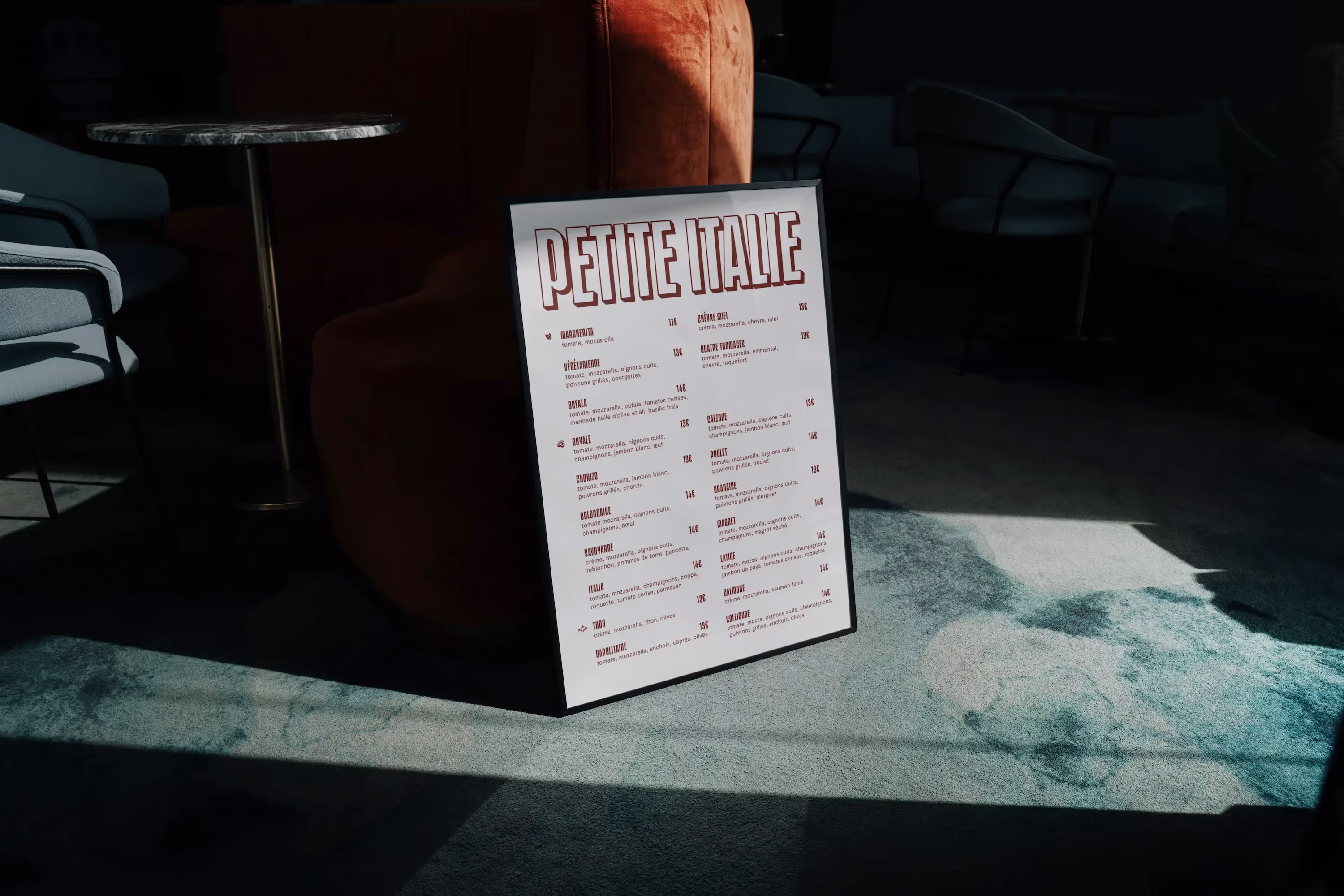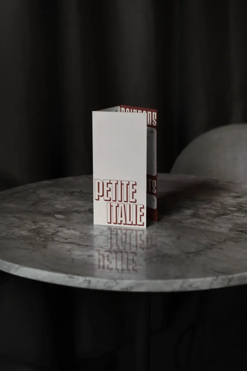 Nous avons créé pour Petite Italie, pizzeria de quartier toulousaine, un univers de marque chaleureux qui transporte les clients au cœur de l'Italie authentique. L'approche visuelle développée puise dans l'héritage culinaire italien tout en s'adaptant à l'esprit convivial de cette pizzeria de proximité. L'identité joue sur les textures authentiques et les couleurs méditerranéennes pour évoquer la convivialité des pizzerias traditionnelles.